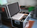 Een flightcase op maat gemaakt voor 6 Apple laptops met toebehoren voor gebruik op locatie bij evenementen.